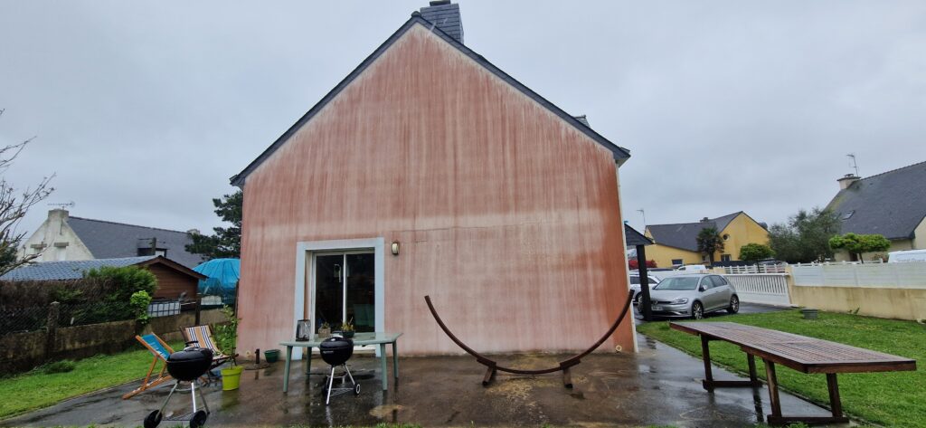 Située en bord de mer, Damgan est une commune où l’humidité peut s’infiltrer plus facilement. Pour éviter tout risque de dégradation, Laurent applique un traitement spécifique sur le sous-bassement. Ce soin préventif protège efficacement la base de la maison contre les infiltrations d’eau et assure une protection longue durée.