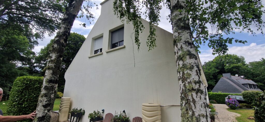 À Arradon, la proximité du littoral rend les habitations particulièrement vulnérables à l’humidité. Pour éviter toute infiltration, Laurent applique un traitement protecteur sur le sous-bassement. Cette intervention préventive renforce la solidité de la base du bâtiment et augmente la longévité des matériaux. Elle permet également de préserver l’intégrité de la façade face aux contraintes du climat marin.
